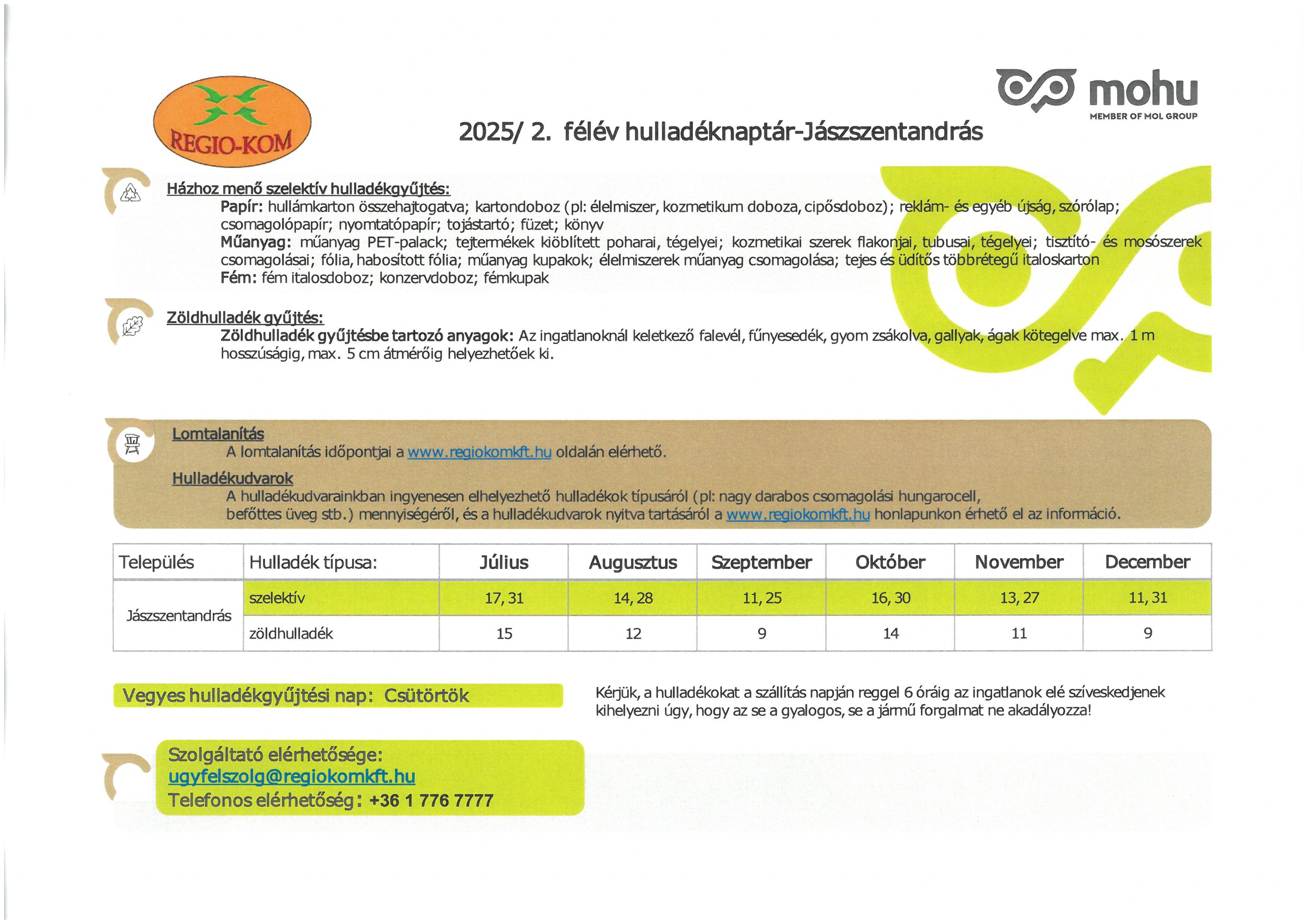 Ezt követően a Regio-Kom Nonprofit Kft. telephelyén (5141 Jásztelek, Külterület 090/2) vehető át előre egyeztetett időpontban.