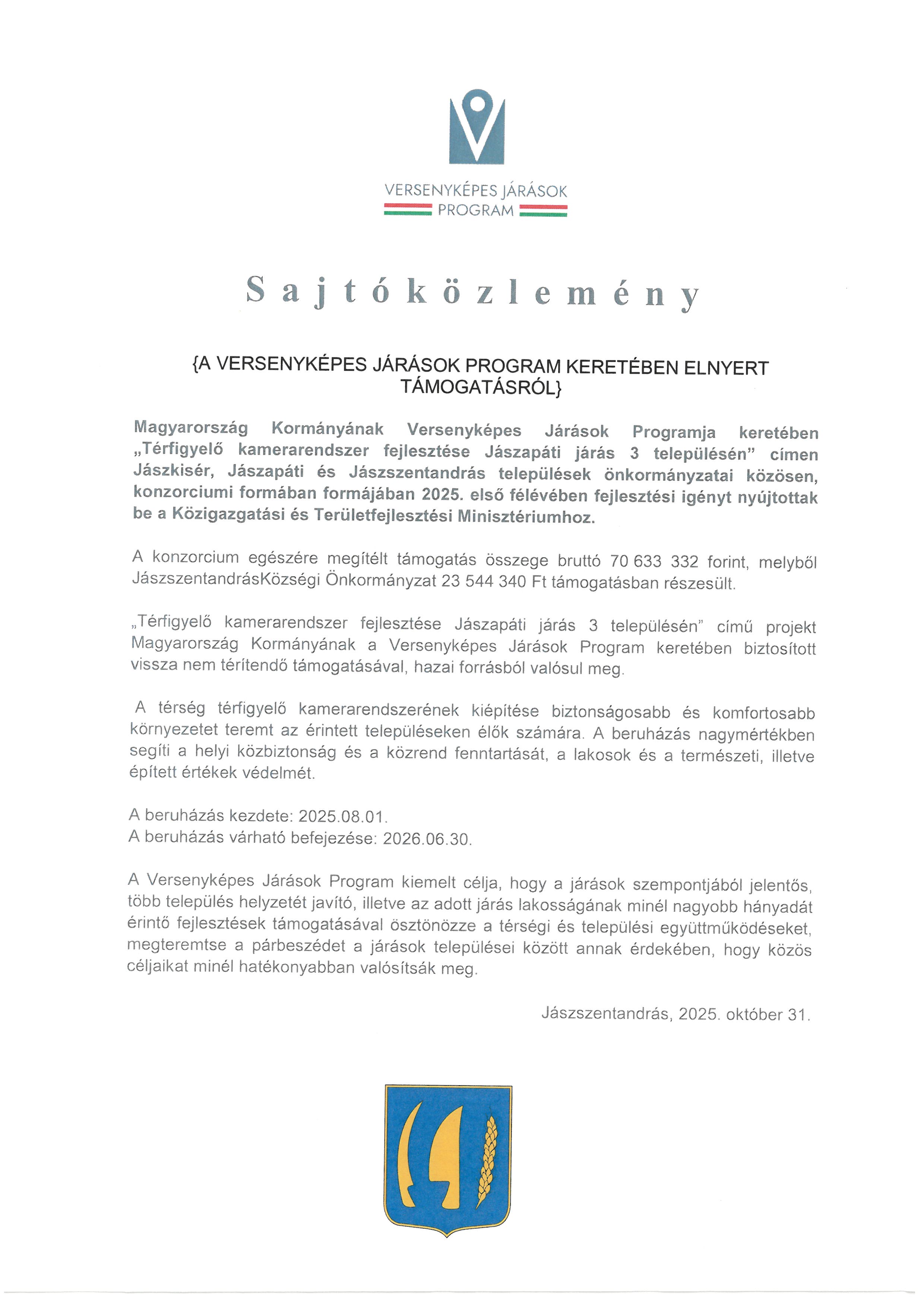 Sajtóközlemény -A versenyképes járások program keretében elnyert támogatásról