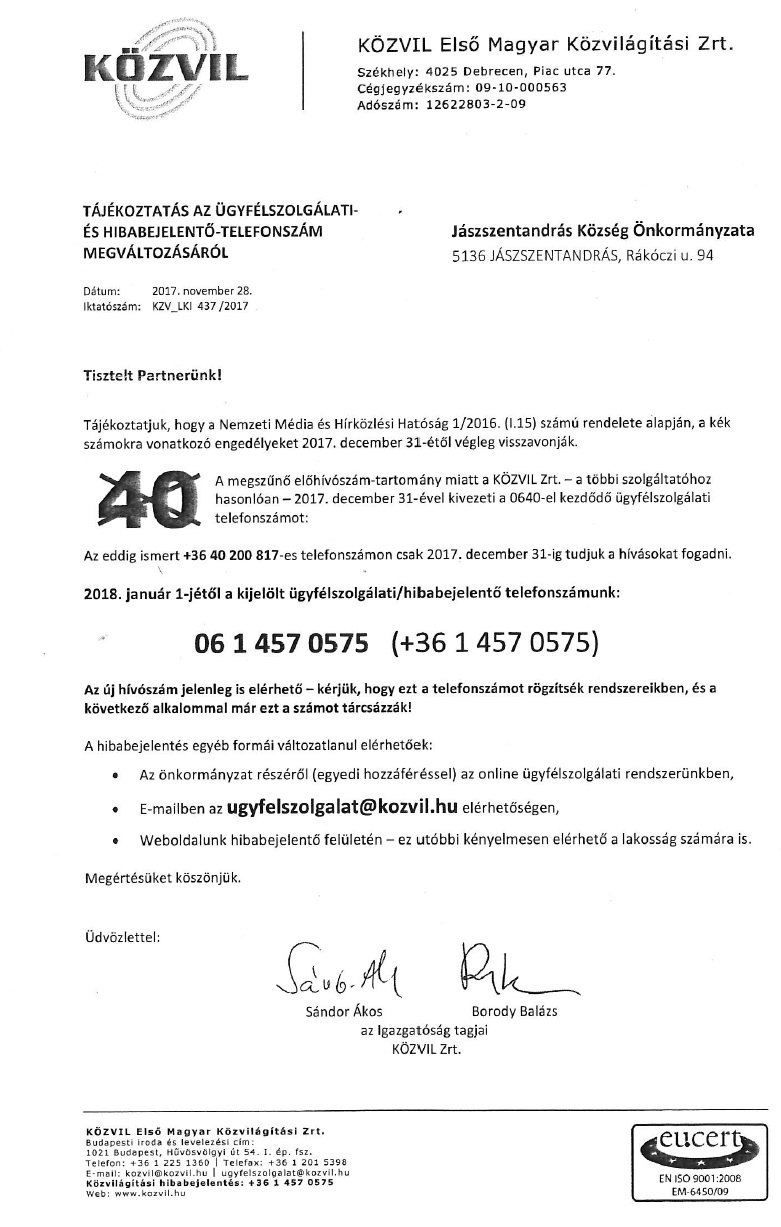 Amennyiben a lakosság közül bárkit érint a fent leírt megtévesztés, az alábbi elérhetőségek bármelyikén jelezzék:
